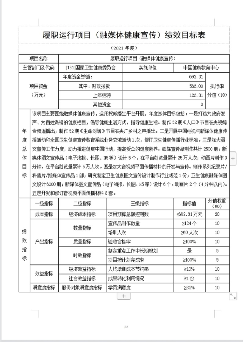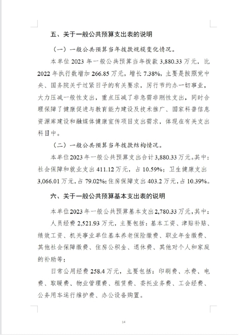 中国健康教育中心2023年部门预算