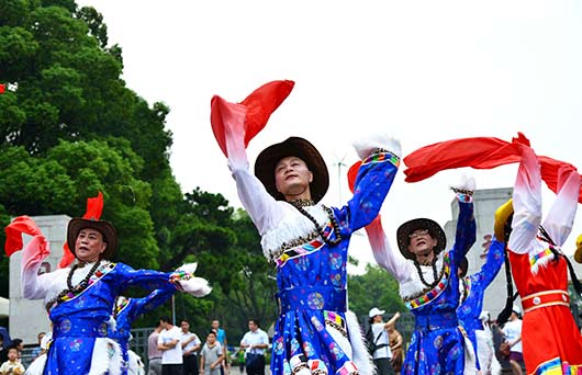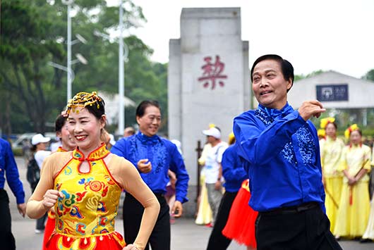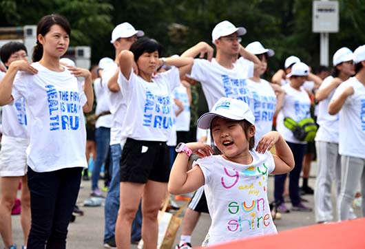 武汉市居民宣读“每天一万步 健康荆楚行”倡议书