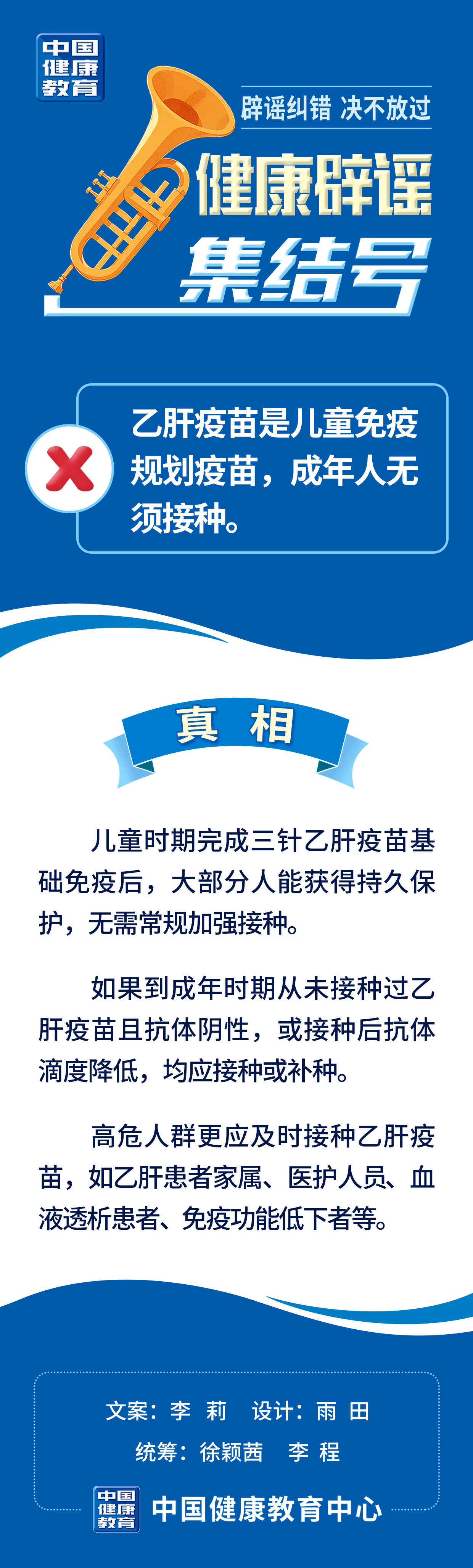 健康辟谣集结号 | 乙肝疫苗是儿童免疫规划疫苗,成年人无须接种?